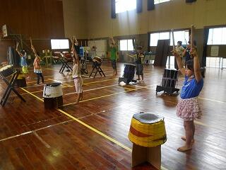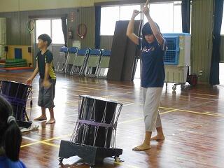 放課後、体育館から、元気なかけ声と力強い太鼓の音が、こだまとなって聞こえてきます。