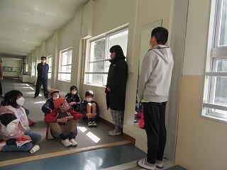 毎週水曜日の下校は、集団下校の集会を実施します。今日も、集団下校でのよさや気付きを出し合いました。「横断歩道で待っていた ら、自動車が止まってくれたので、お礼が言えた。」ということを、5年生が発表しました。止まってもらえるとうれしいですね。感謝 の気持ちを伝えることができました。