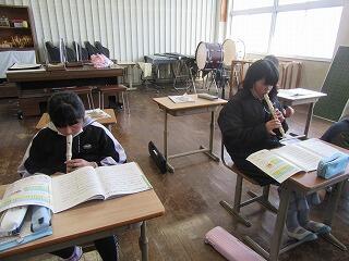 4・5年生の音楽では、課題「ルパンのテーマ」の合奏に取り組みました。テンポが速くても、あきらめずに仲間と協力しながら 練習する姿が見られました。
