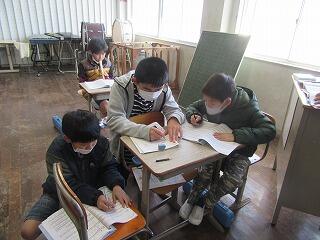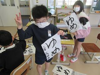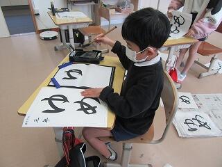 3年生は、書写の学習。毛筆(習字)に挑戦。みんながんばり、のびのびとした仕上がりになりました。