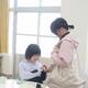 「とっチュウ」とふれあい、朝から楽しそうです。