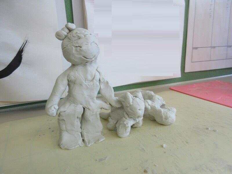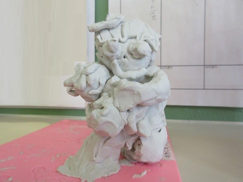 1年生の粘土作品です。優しい表情ですね。