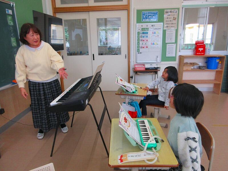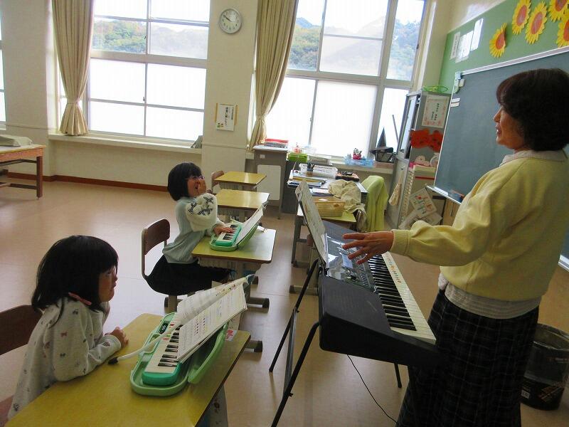 1年生は、音楽の授業中です。