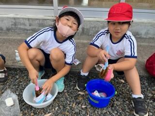 生活の「えがお大作戦」の学習では、シューズ洗いに取り組んでいます。