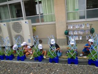 これからどんなふうに育っていくのか、わくわくどきどきのようです。あさがおが、元気に大きく育っていくようにみんなで大切にお世話をしていくことでしょう。