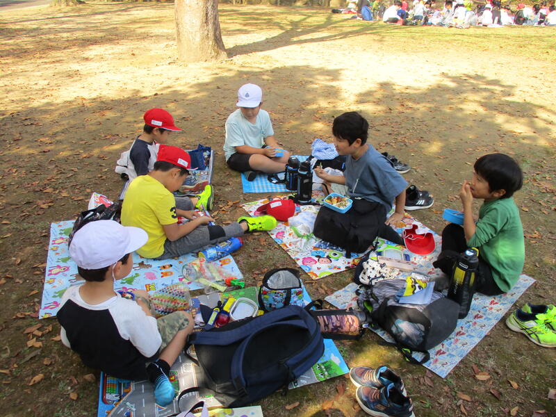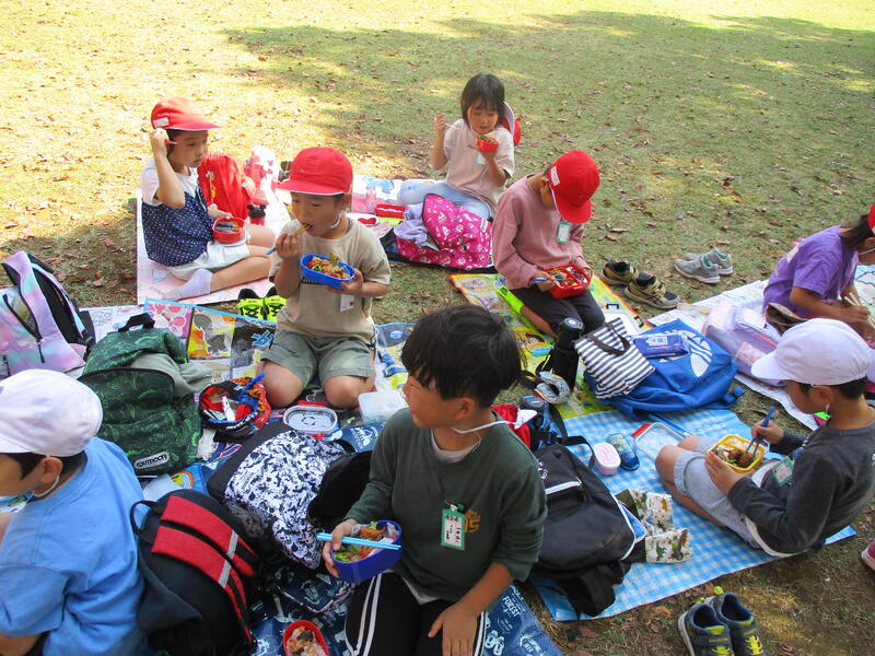 はじめての遠足の一番の楽しみは、やはりお弁当のようでした。保護者の方々が一生懸命作って下さったお弁当はとてもおいしかったようです。