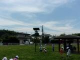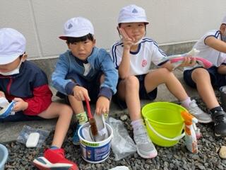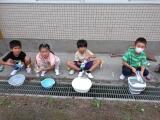 今年は、長雨続きの毎日でした。雨間をぬって、生活科の学習「なつをたのしもう」で、シャボン玉あそびや水でっぽうあそびを行いました。