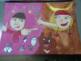 読書感想画の作品です。みんな絵の具を使って、きれいに背景を