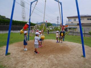 西階公園では、ぶらんこやすべり台など、ともだちと交代したり順番を守ったりしながら、楽しく遊ぶことができて、大満足な子どもたちでした。