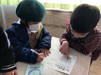 生活科の「1年生をむかえるじゅんびをしよう」の学習で、新1年生を迎えるための準備を行いました。4月から3月までの学校生活をふり返り、新1年生に教えてあげたいことを絵と文で書きました。「きゅうしょくは、おいしいですよ。」「ほけんしつは、けがをしたときやびょうきのときにいきます。ほけんしつの先生は、わたしたちをまもってくれますよ。」「あさがおのたねをまきますよ。いろ水あそびがたのしいですよ。」など、今年1年間の学校生活で感じたことを絵と文で書き表しました。もうすっかり、1つ年上のお兄さん、お姉さんとしての自覚が出てきたようで、とてもたのもしく感じました。このカードは、来年度の入学式の日に、1年生の各教室の背面掲示板に、お祝いの飾りとして貼られます。いよいよあと4日で、1年生を修了します。2年生の進級を楽しみにがんばっている子どもたちです。