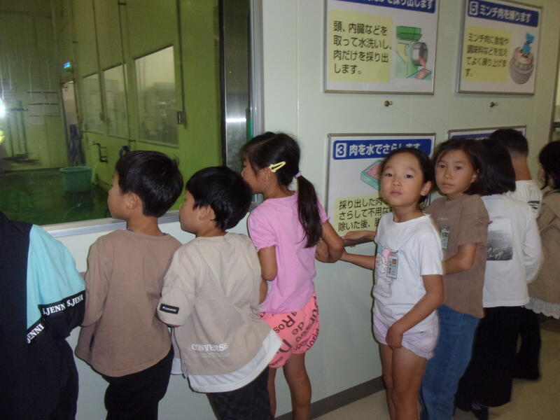 11月4日に秋の遠足に行きました。岸上蒲鉾工場を見学させてもらい、その後、道の駅北浦に行きました。