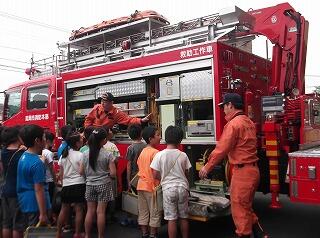 消防署では、消防車や救急車、通信司令室を見せていただき、万が一の時にどのようにして自分達の安全をまもってくださっているのかがよくわかりました。先日の熊本地震の時に実際に出動した「支援車」の中も見ることができ、安心しました。