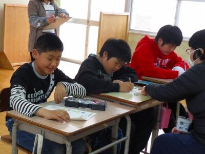 子どもたちは、話を聞いたり、質問したりして分かったことをたくさんメモしていました。