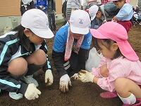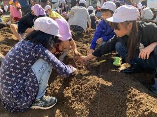 幼稚園生と芋の苗植え