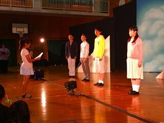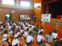 前半は、体育館でお話を聞きました。