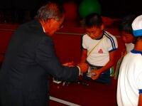 見事に1位、2位、3位に輝いた児童には、松ぼっくりのメダルがプレゼントされました。また、10位までに入賞した児童には賞状、走りきった全員に完走賞、見学した児童には、役員賞が贈られます。