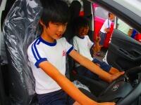 後半は、実際に6台の自動車をもってきていただいていたので、外から見たり実際に乗ってみたりして見学を行いました。エンジンを興味深そうに見つめたり、運転席に乗ってハンドルを握ったりして、子どもたちは大興奮でした。