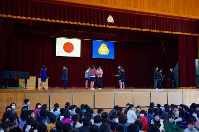 6年生は、南方小の最上級生として、「あいさつ運動」や「1年生のお世話」「運動会の団長・副団長・応援リーダー」などをがんばってきました。6年生が受け継いできた南方小の伝統を、もうすぐ最上級生となる5年生にバトンタッチしてもらう式でした。