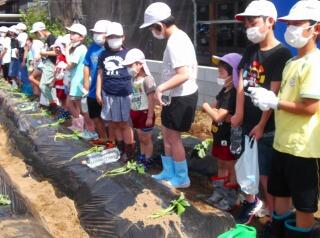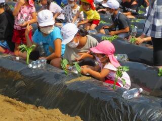 6月5日(水)に西階幼稚園の園児たちと芋の苗植えをしました。