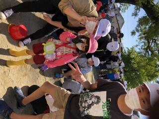 その後は、門川の心の杜へ移動し、お昼ご飯!友達と楽しくお弁当やお菓子を食べていました。心の杜へ着いたときには、疲れからかやや元気がありませんでしたが、食べた後は元気100倍になったようで、楽しく公園で遊ぶ姿がありました。