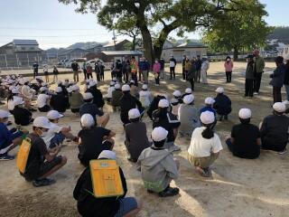 1月14日に避難訓練がありました。5年生から3名の児童が代表して消火器を使う訓練をしました。