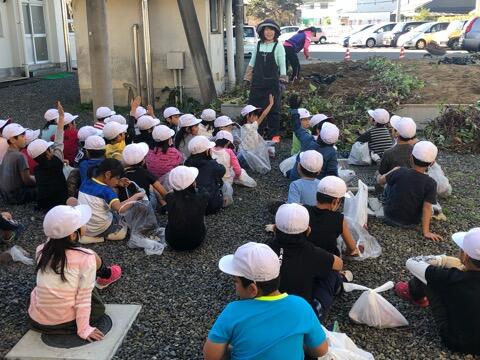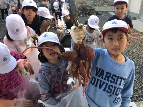 5年生と西階幼稚園の園児が、いもほりをしました。