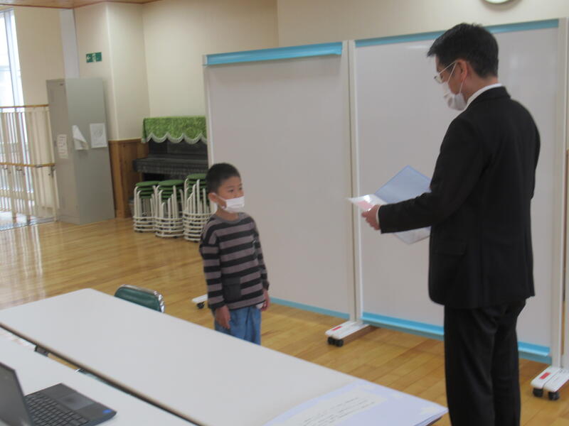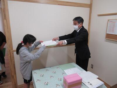 続いて、各学年の代表に校長先生から修了証書を渡しました。