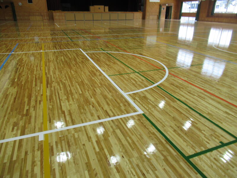 10月より体育館の照明と床面の工事で体育館が使用できませんでしたが、当時の工程より速く工事が終わりました。来年1月4日から使用できます。照明のせいか全体的に明るい印象を受けます。