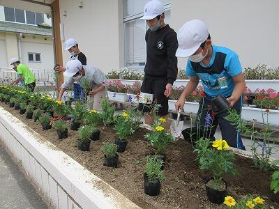 梅雨の晴れ間となった今日、環境委員会の子どもたちが人権の花運動で贈られた花の苗を花壇に植えました。マリーゴールドや千日紅など、美しい花の数々です。これから、子どもたちが中心となってお世話をしていきます。(管理等東側と正門近くの花壇を使って花を育てていきます。)