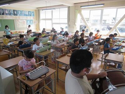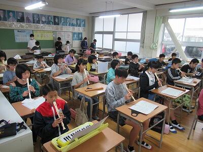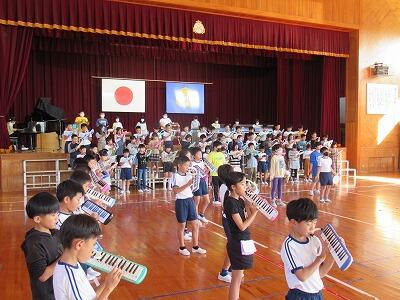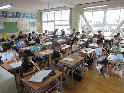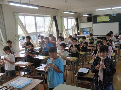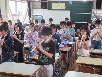 昨日、練習を重ねてきた4年生の音楽発表がついに行われました。(感染対策のため、3・5・6年生と1・2年生の2回に分けて演奏しました。)