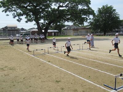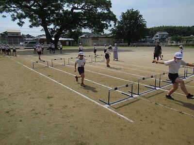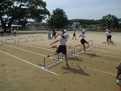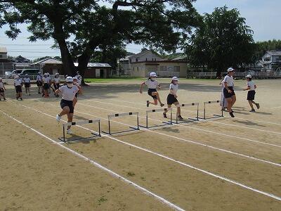 運動場では6年生がハードル走の練習をしていました。ハードルにぶつかる怖さを克服し、リズム良く跳び越すことができるよう何度も練習を重ねていました。