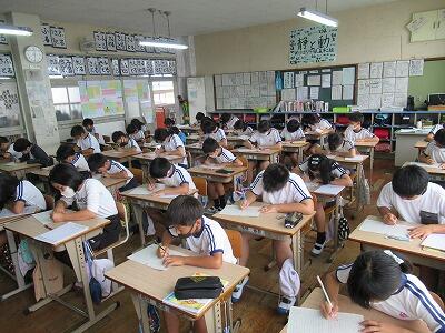 南方小学校の6年生も、この日を一つの目標としてがんばってきました。各教室では真剣に問題に取り組む子どもたちの姿が見られました(国語と算数)。