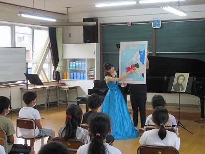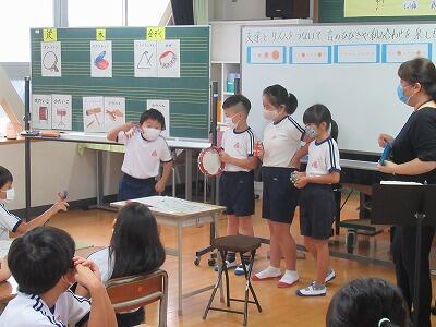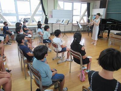 子どもたちは、様々な楽器の音色に驚いたりメロディーの美しさに感動したりしていました。途中、世界のいろいろな楽器を体験させていただく場面もあり、子どもたちは大喜びでした。