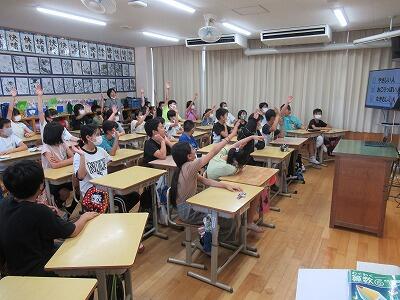 各教室では、真剣にテレビ画面を見つめる子どもたちの姿が見られました。