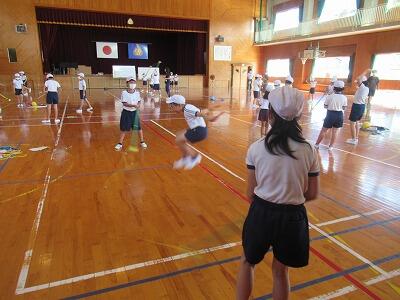 体育専科と学級担任が、一人一人へのアドバイスを細かに行っています。上達する楽しさを味わうことができているようです。