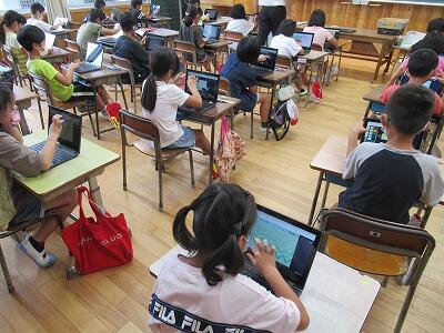 1時間かけてほぼ全員の端末が使えるようになりました。使い方に慣れ、各教科の学習がさらに充実することを願っています。