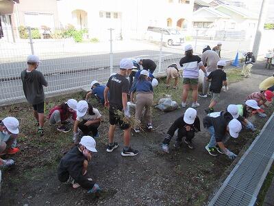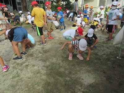 学年ごとに分かれ、それぞれの場所の草取りや石拾いをしました。いっしょうけんめい体を動かし、とれた草を嬉しそうに見せてくれる子どもたちがたくさんいました。