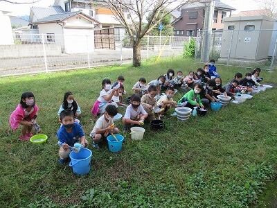 隣接する西階幼稚園の子どもたちと一緒に芋掘りをしました。
