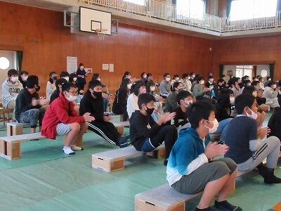 校長先生から、「反応すること」の大切さについてのお話がありました。相田みつをさんのセトモノという詩から、あいさつや授業中の返事、友達同士の会話などで相手の気持ちを考えることについてのお話でした。