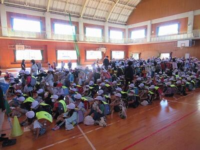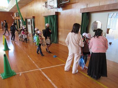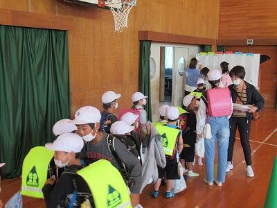 本校は児童数が多いため、迎えの車を校内に入れて事前に練習することが困難です。そこで、児童と職員で本番と同じように集合・確認・引き渡し(下校)までをシミュレーションすることにしました。