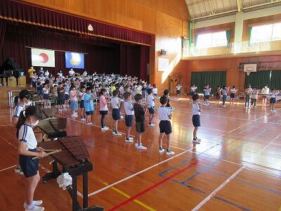 昨日は体育館で本番さながらの練習をしていました。美しく迫力のある音色に、4年生の心が一つになっている感じがしました。