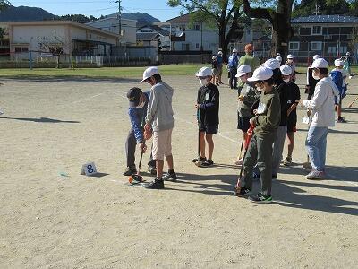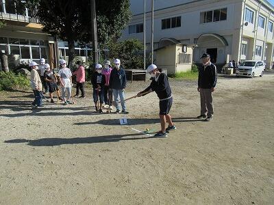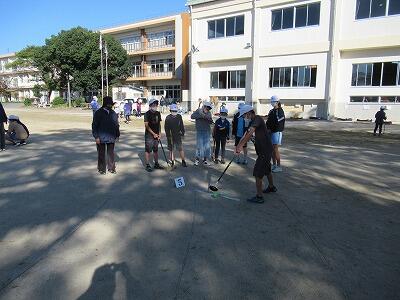 朝早くから多くの地域の皆様(約50名)においでいただき、にぎやかに実施することができました。グランドゴルフを初めて体験する子どもたちも多く、地域の方に優しく教えていただきながら楽しく活動することができました。子どもたちの楽しい思い出になったようです。