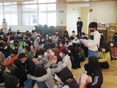 生徒指導主事からは、自転車の乗り方や雨の日の過ごし方について、安全に過ごすためには「思いやりの心」が必要であるというお話がありました。