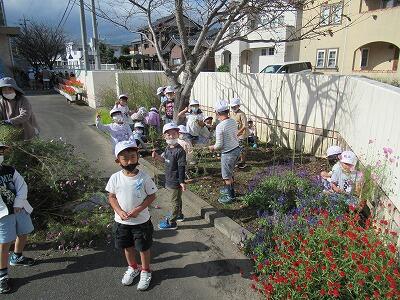 ちょうど同じ時間、畑の横では1年生がチューリップの球根を植えていました。きれいな花が楽しみです。