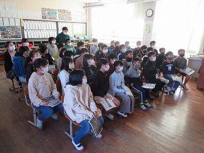 「失敗したらすぐに反省すること」「基本を大切にすること」「人の話をよく聞くこと」「命を大切にすること」など、未来に向かう6年生の心に響くお話を聞かせていただきました。子どもたちは真剣な表情で聞いていました。