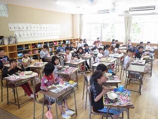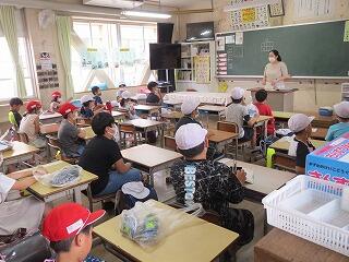 今日は、延岡市長さんにもおいでいただき、子どもたちに地元の水産業の話をしていただきました。校内放送で全校児童に話していただいたあと、6年生の教室で熱く語っていただきました。延岡市の水産業(水揚げ)が全国7位、九州では2位というお話に子どたちは驚いていました。カンパチを食べた子どもたちからは「甘くてやわらかくておいしい」「新鮮な魚が食べられてうれしい」などの感想が聞かれました。