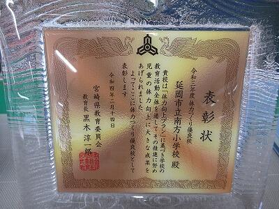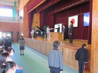 最後に、延岡市による善行児童表彰の表彰を行いました。ボランティア活動等をがんばっている6年生児童が表彰されました。これからの活躍も楽しみです。