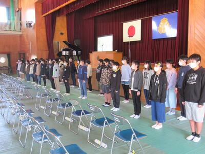 式次第にしたがって、本番と同じように練習しました。子どもたちはとても緊張した様子でしたが、本番に向けての新たな目標や心構えをもつことができたようです。