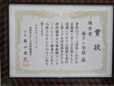 本校のPTA広報部が発行しているPTA新聞「虹の杜」が、延岡市PTA連絡協議会の広報コンクールで優秀賞を受賞しました。おめでとうございます!