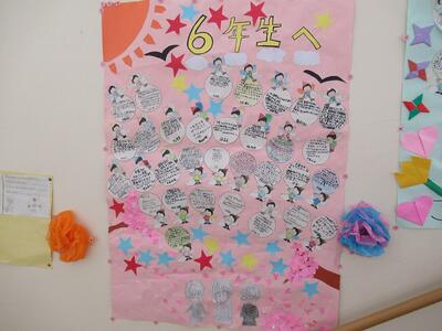 卒業する6年生に向けて、在校生からのメッセージをクラスごとにまとめました。